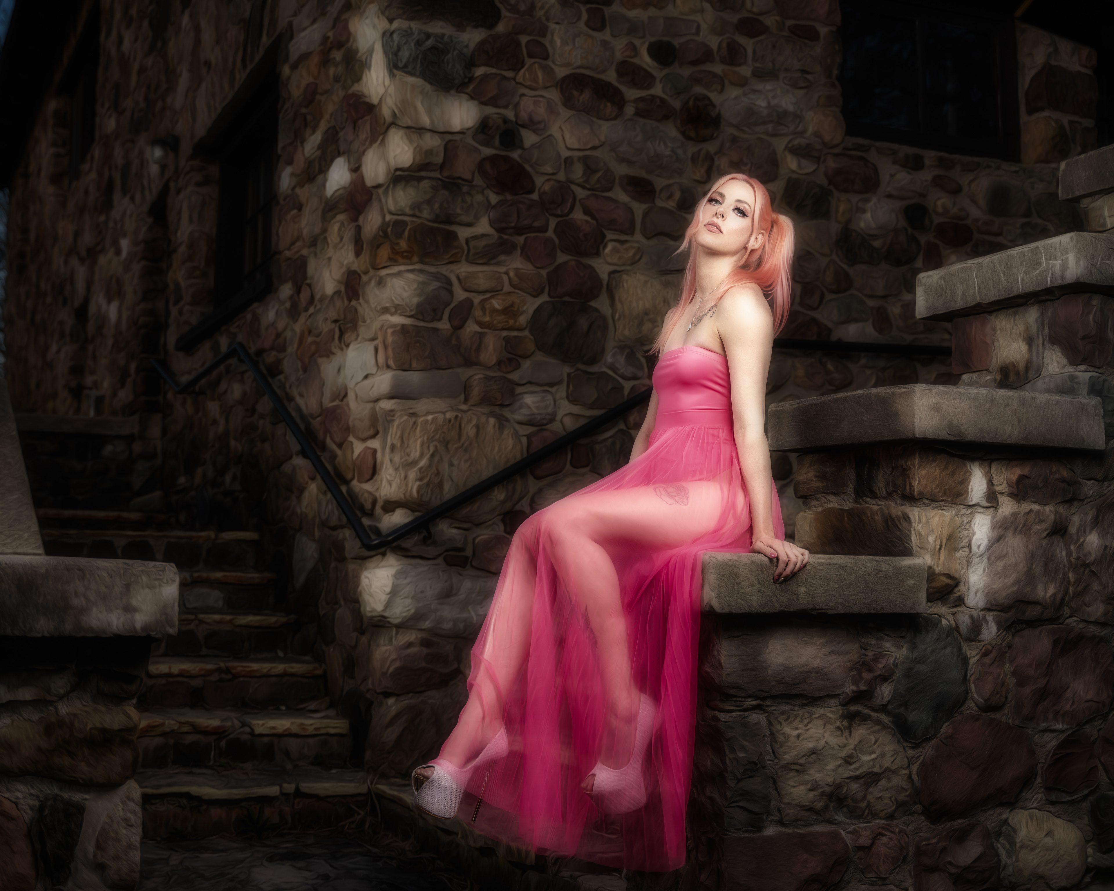 Texture dark concentrate floor with mist or fog